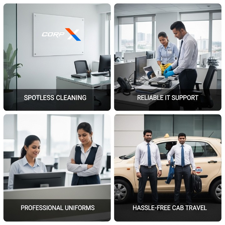 At CorpX Services, we make business management simple. We are your one-stop partner for the everyday support your company needs. From IT support and deep cleaning to IT repair services, corporate travel, and corporate uniforms, we cover it all under one roof.